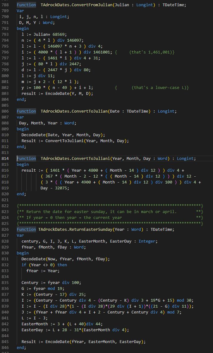 It’s trivially easy to convert any of the nearly 200 pascal based Delphi DateClass functions to other languages…