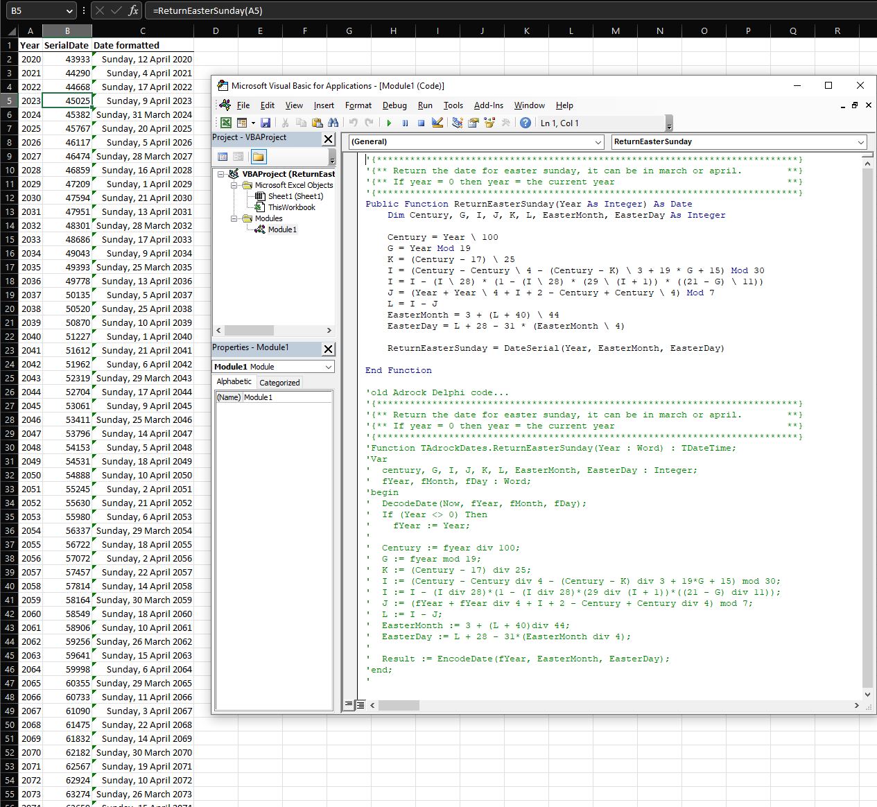 But don’t sweat it – our ReturnEasterSunday function in our Date class (AdDate.pas) has got you covered – see sample pic.